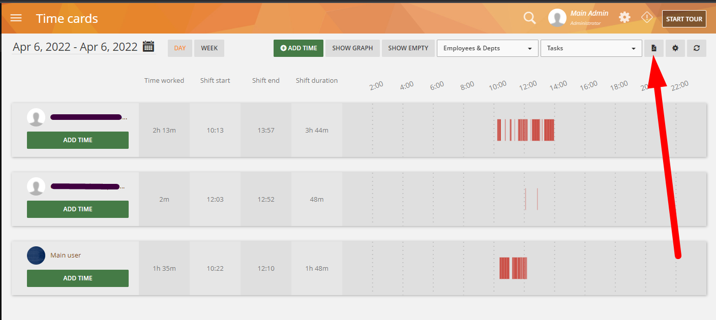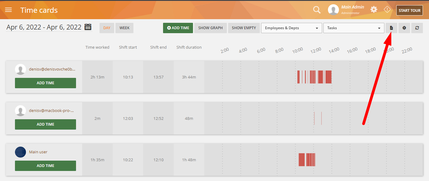 Ability to export Time Tracking > Time Cards report to a PDF and CSV file